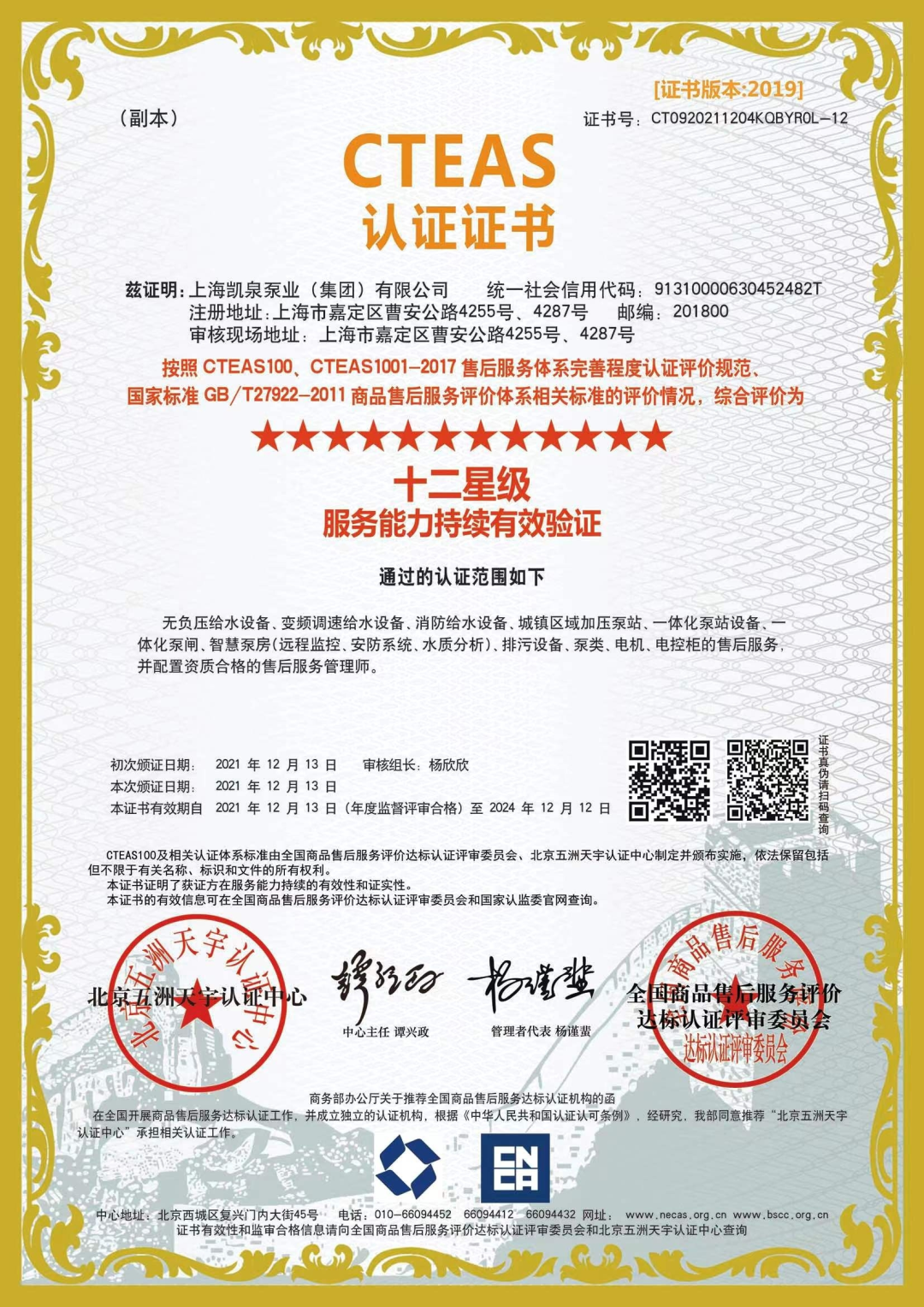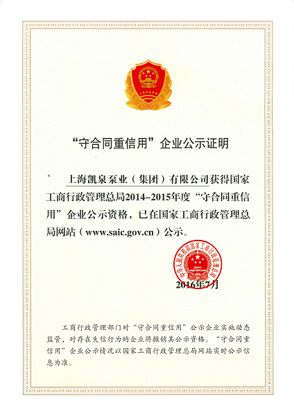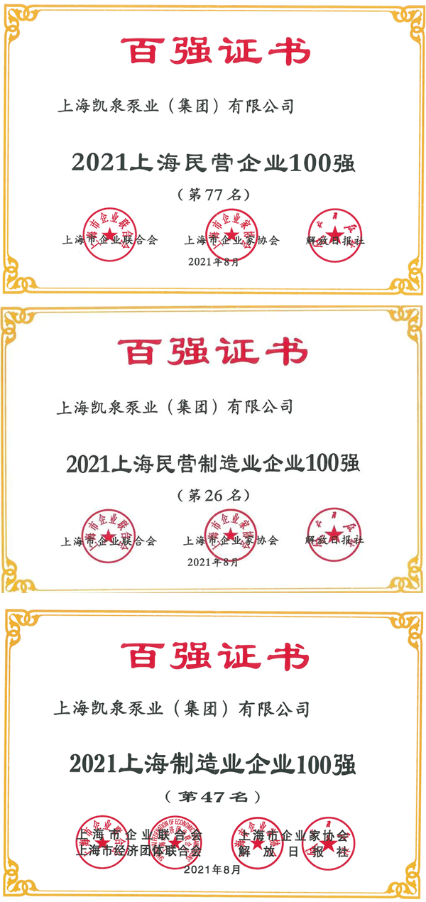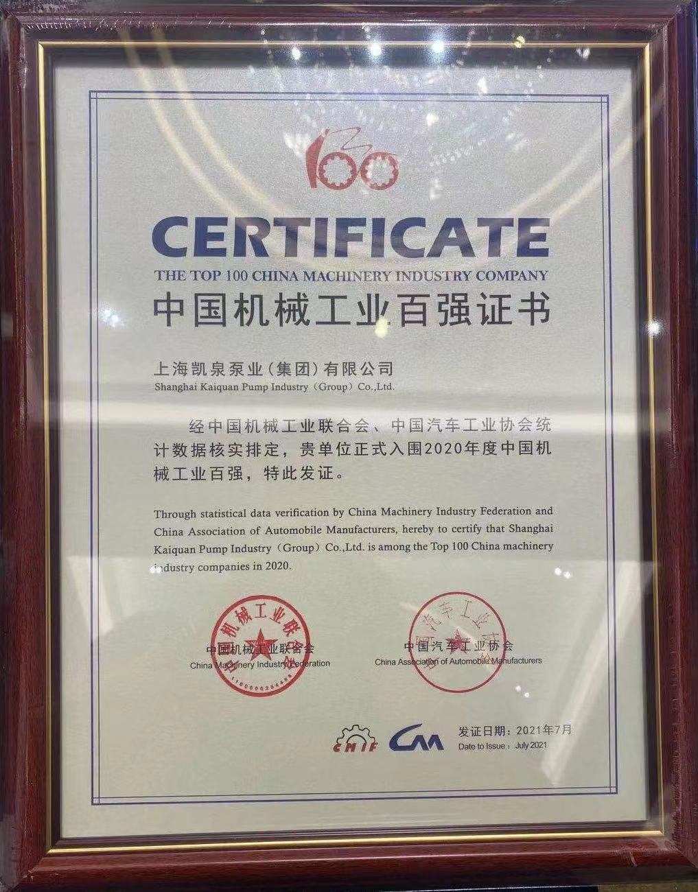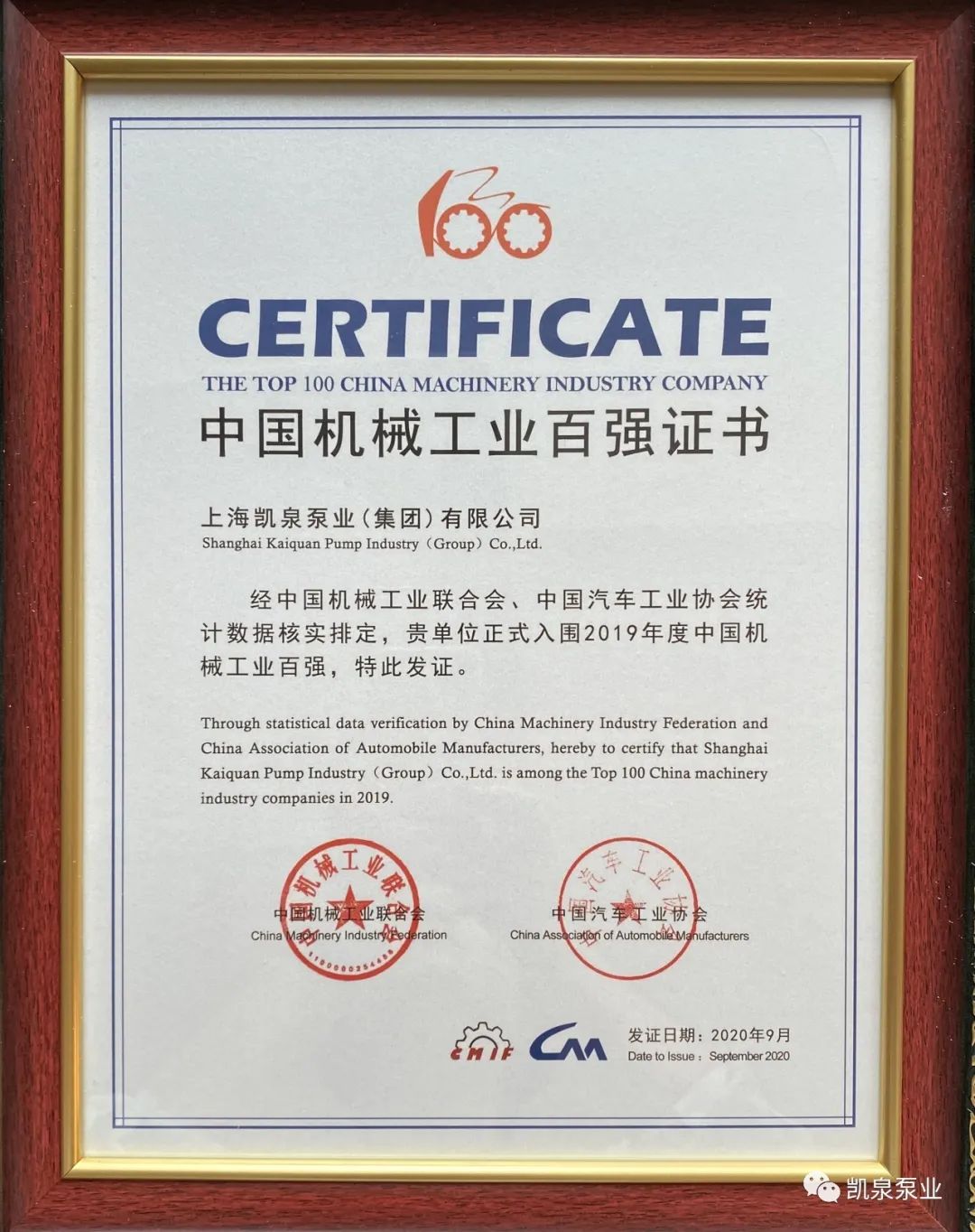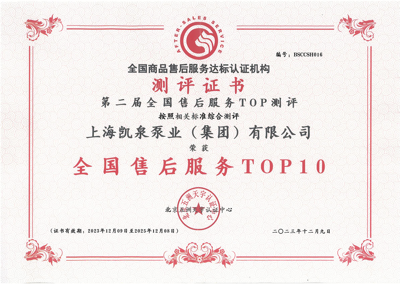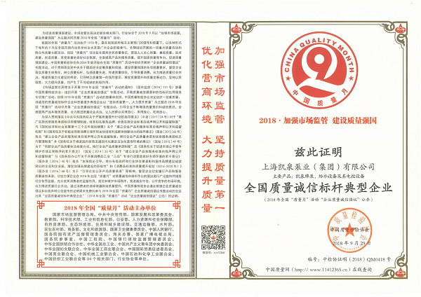 凯泉品牌被评为“全国水泵行业质量领先品牌”