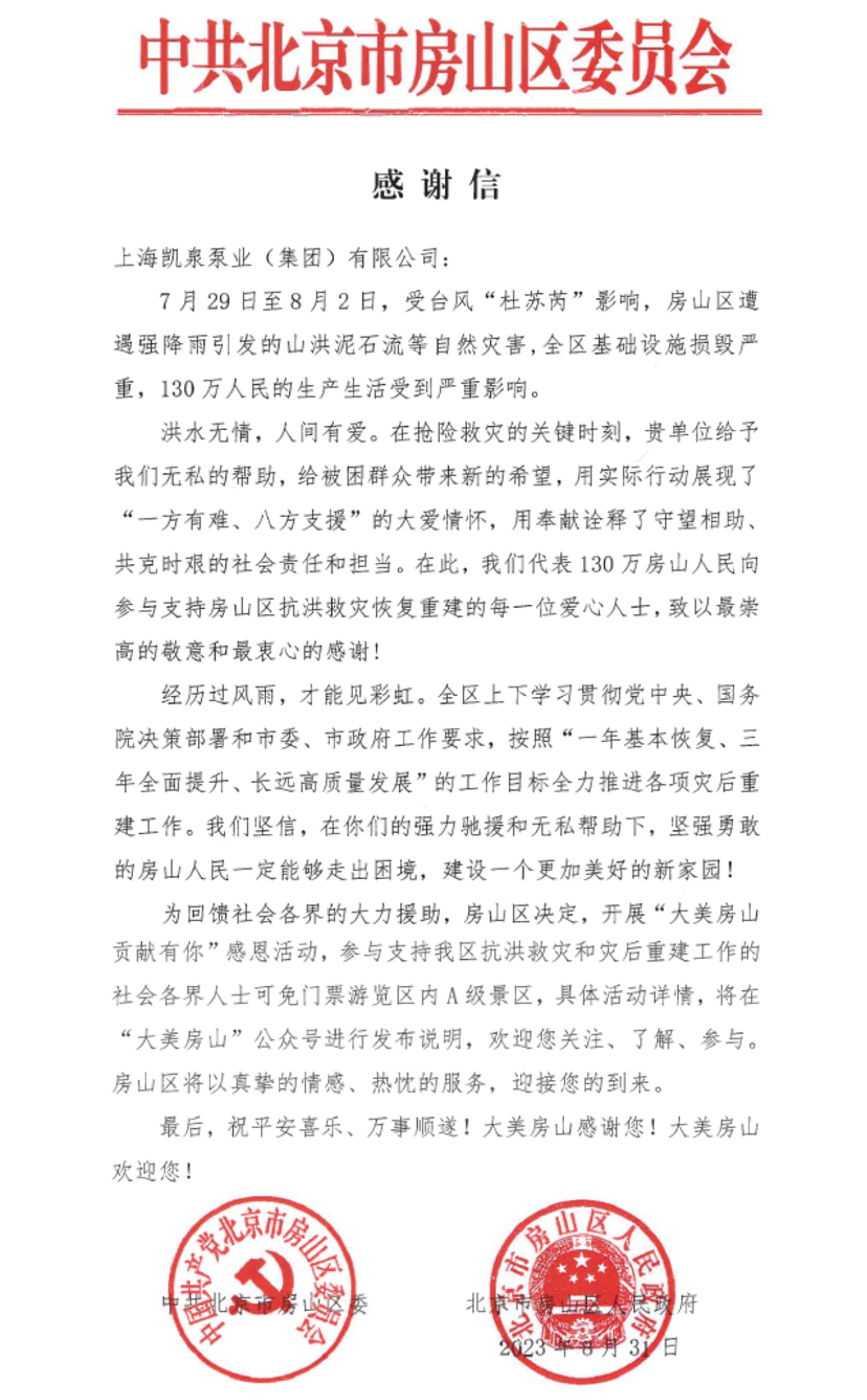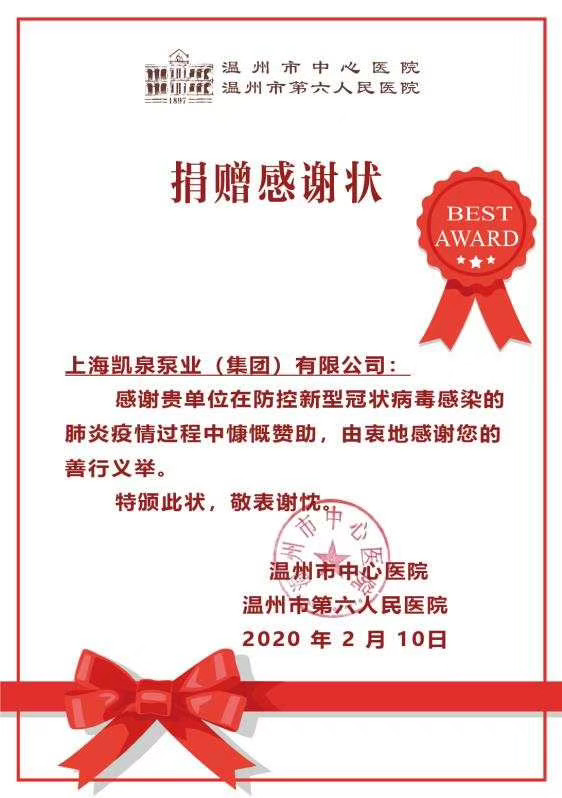 上海凯泉泵业有限公司向玉树地震灾区捐款50万元